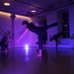 Composition by Teresa Fellion includes cello, piano, and two vocalists. Its increasing levels of harmony and dissonance expand energetically outward. (can be presented live, with vocalists integrated into performance as dancers’ subconscious). Enhanced lighting design delineates architecture of shared and isolated space.