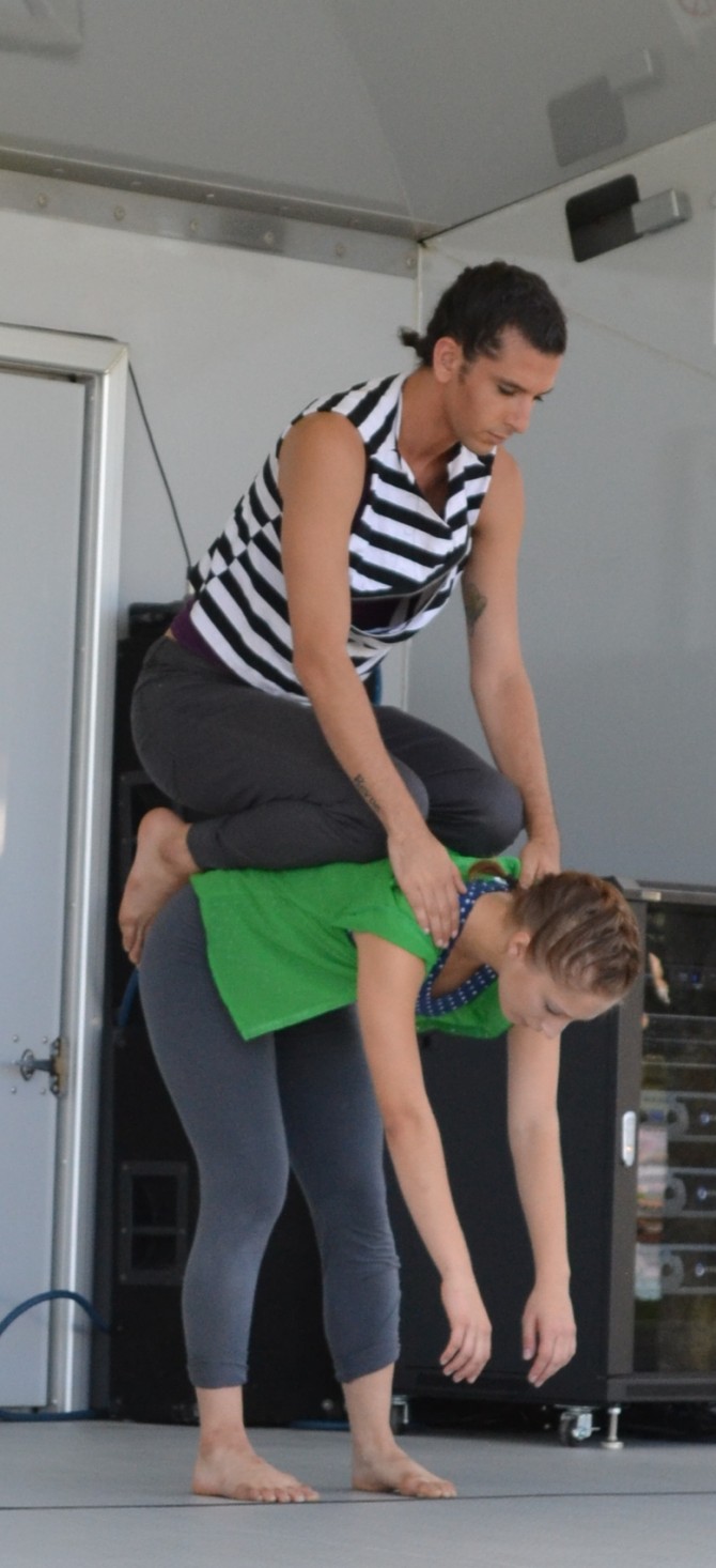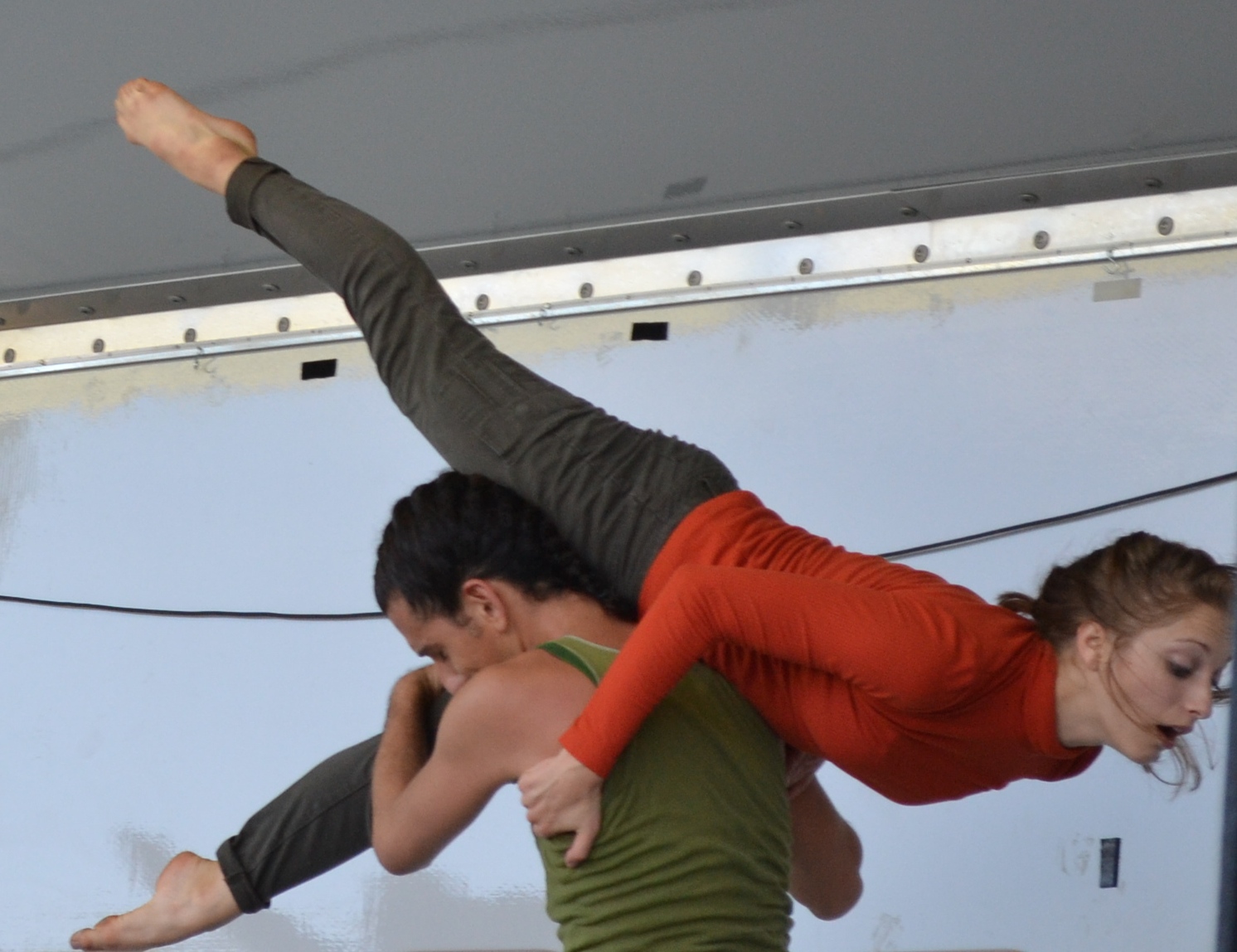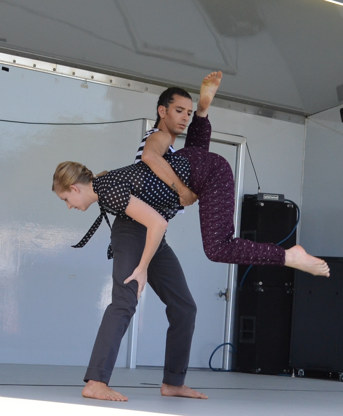 I really enjoy dancing with a lot of release and rebound. I also love full weighted partnering. I also like to connect all of my movements through imagery, sounds, and experience. For example, a ripple through the body may turn me into a flag whipping in the wind, or I may make the sound of wind with my mouth when I do the movement, or I might imagine the experience of your hair writhing and blowing from the hair dryer. I also make a lot of noises when I’m teaching or remembering movement.