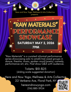 We are thrilled to announce that BodyStories has been invited to participate in Raw Materials, an exciting new event designed to spotlight and uplift the vibrant arts community. Hosted by Here and Now Yoga, Wellness & Arts Collective, this inaugural annual gathering, Raw Materials: A Curated Showing of Performing Arts, offers a unique platform for artists to share their creative voices. The showcase will feature an array of talent, ranging from dance and spoken-word poetry to comedy, music, and more. This informal, inclusive event is intended to foster new connections, encourage creative exchange, and celebrate the power of artistic collaboration.