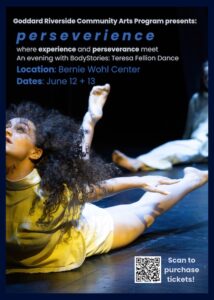 p e r s e v e r i e n c e, when experience and perseverance meet, is a celebration of The BodyStories 2024-25 residency with the Goddard Riverside Community Arts Program at the Bernie Wohl Center. p e r s e v e r i e n c e is a series of three performances full of energy, and we can’t wait to share our story with you. I would like to personally invite you to save the date to join our company for the upcoming performances on Thursday 6/12 at 7 pm and Friday 6/13 at 7 pm & 9 pm! We are grateful to celebrate the closing of our residency with Goddard, as well as the BodyStories community.