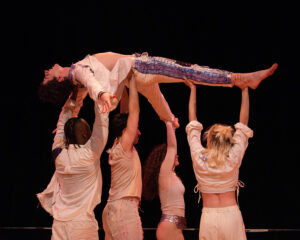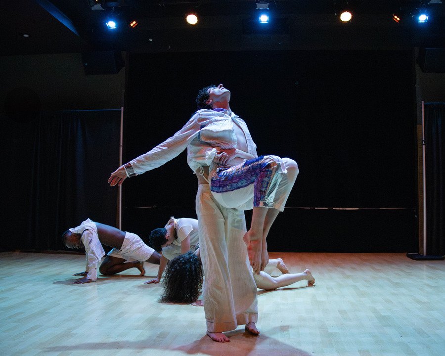 p u r p l e f l a m e is a work that explores the strength of human resilience through the perspective of an individual and of a community more broadly. It specifically explores the challenge of navigating personal health challenges and navigating the journey of finding strength and adaptability within times of vulnerability. The choreographic inspiration for this work arose within a free movement rehearsal space. In p u r p l e f l a m e, fluidity and buoyancy act as thematic anchoring points as dancers allow themselves to fall freely through space. The work investigates personal intuition and group support, illustrating the depth and complexity of each person’s lived experiences and state of being.